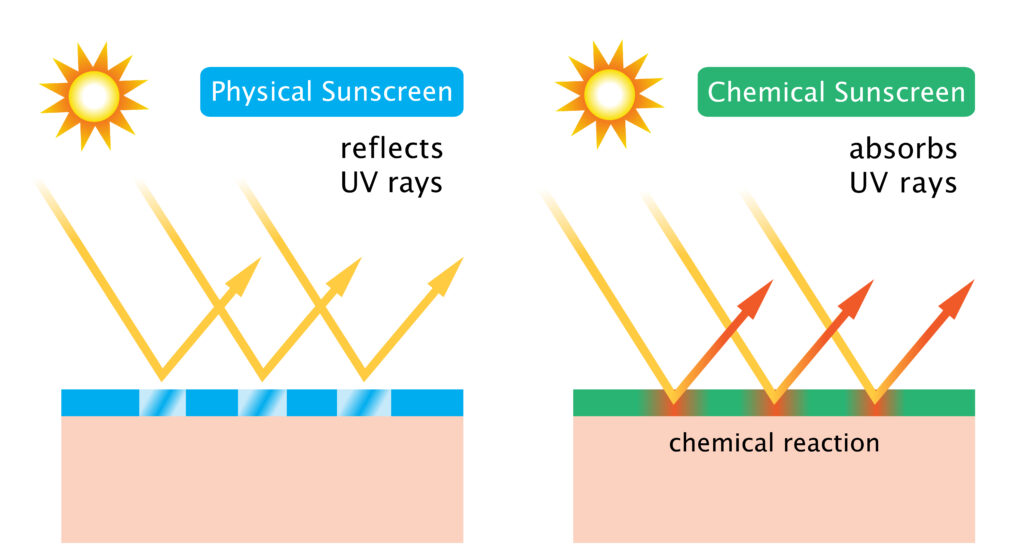Sunscreens typically use either physical (mineral) or chemical filters to protect your skin from UV rays.